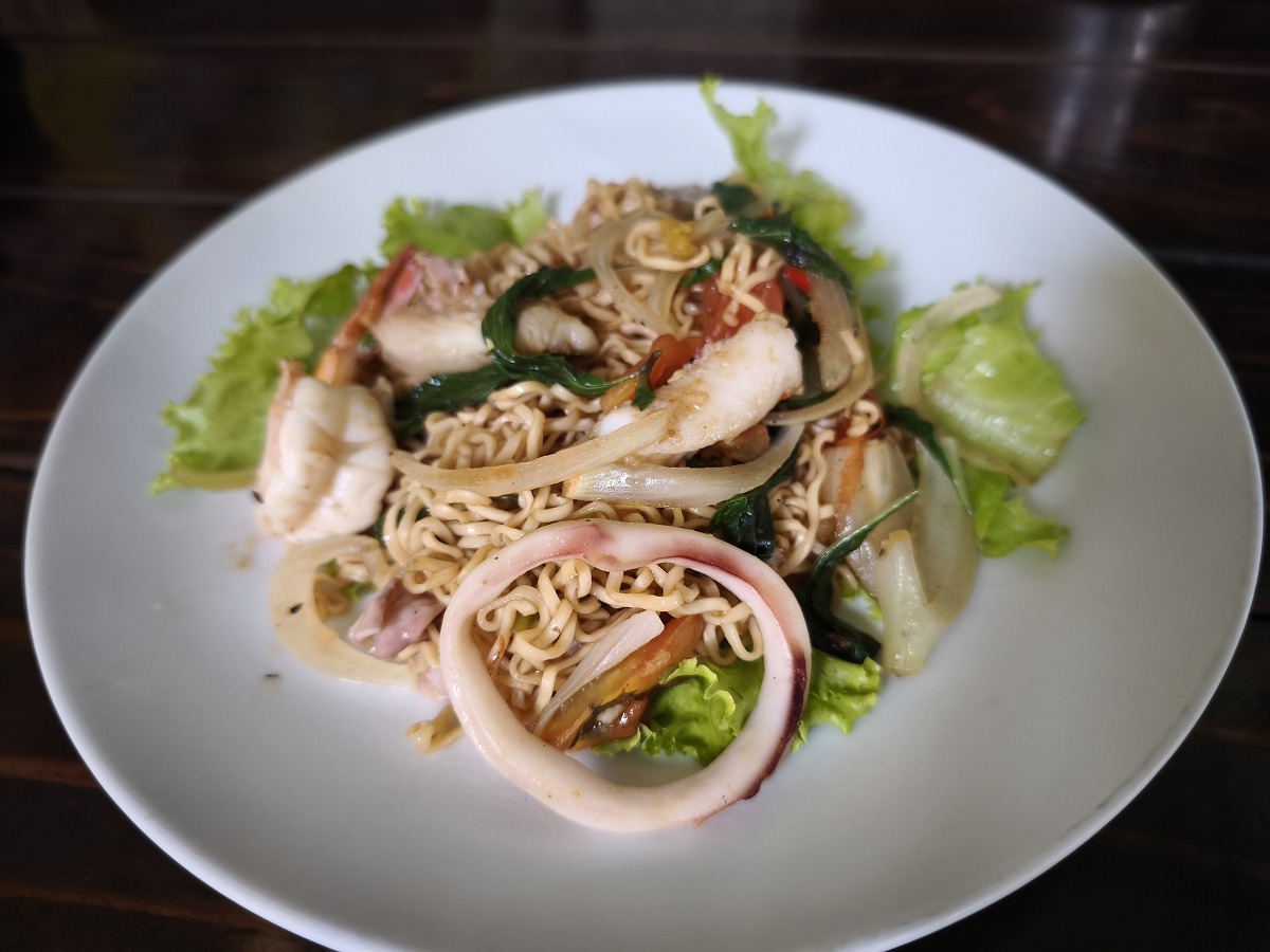 こちら食堂で麺ものをたのむと、ちゅうちょなく、インスタントラーメンを使うので面白いです。