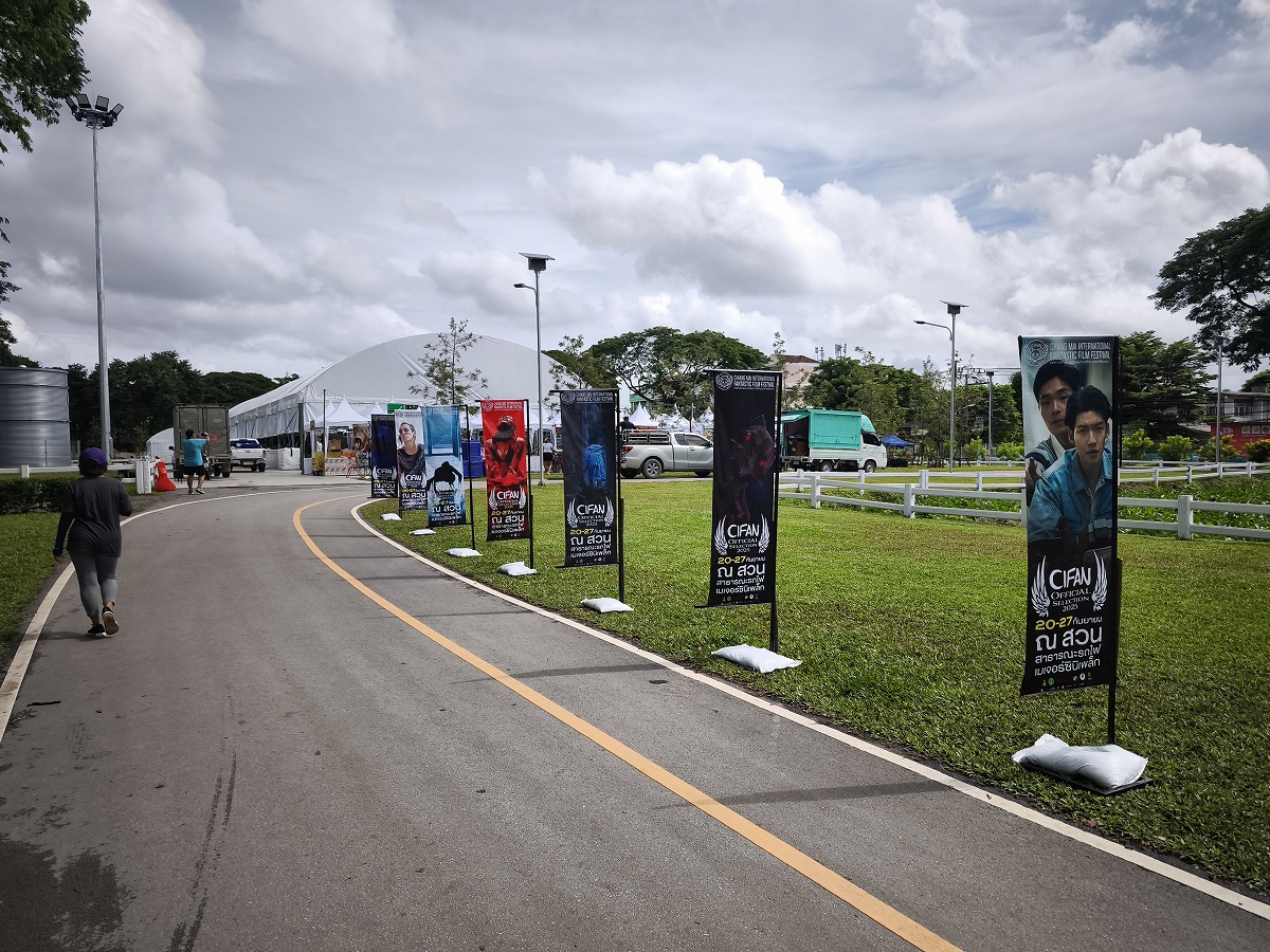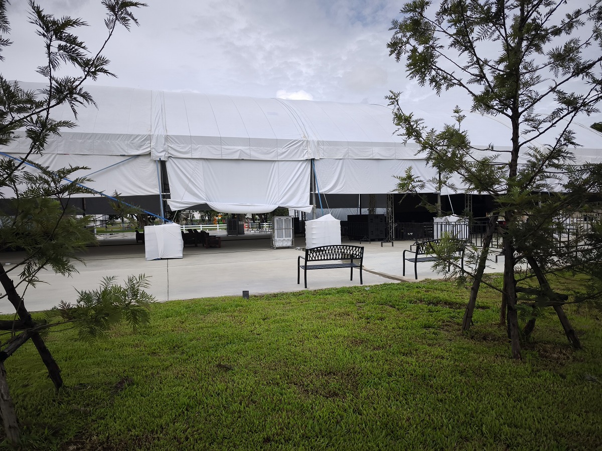 ウォーキングコースに設定していたテント村、どうやら夜に映画を上映するようだ。