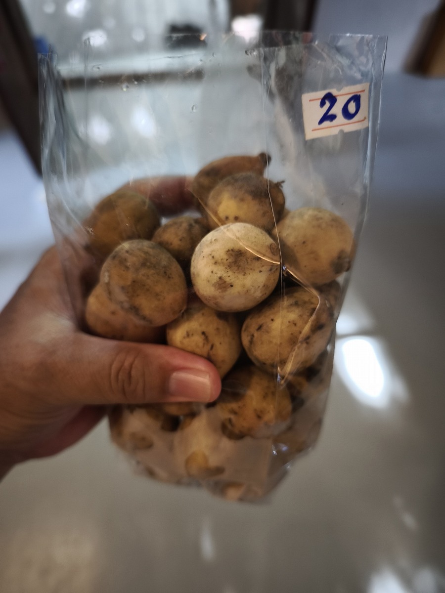 ロンガンと大きさは同じ、少し尖っていて、中味はグレープフルーツとロンガンを足して2で割ったような味。冷やして食べるとおいしい。これは気に入った。また買いに行こう。