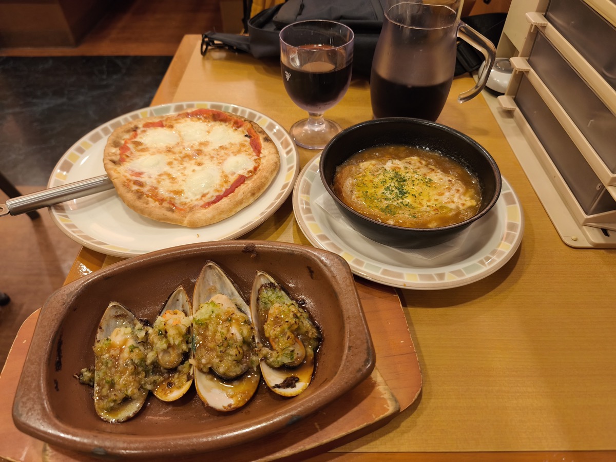 ちょうど駅ビルの地下にサイゼリアがあったので寄る。基本帰国時には必ず寄っているような気がする。