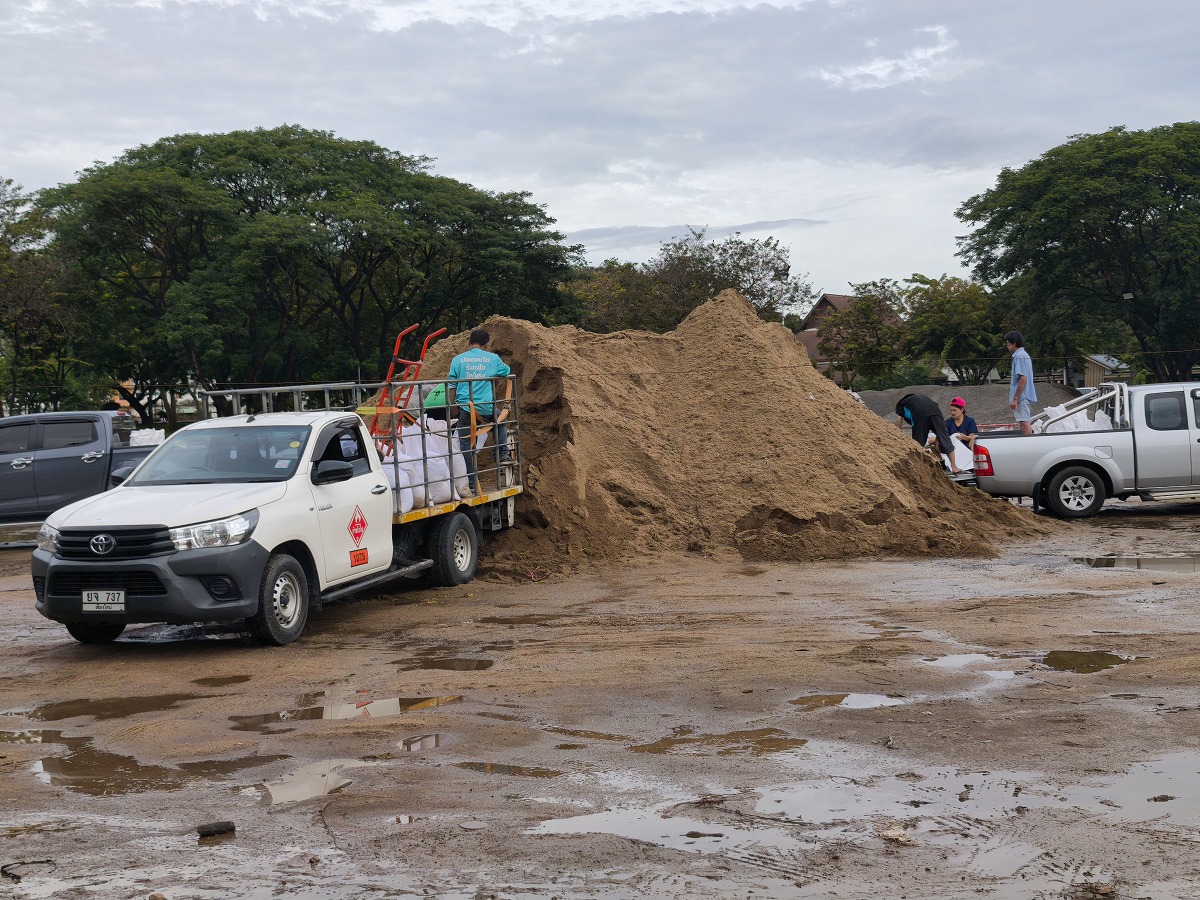 土のうを作っていました。もしもの時に備えるているようです。