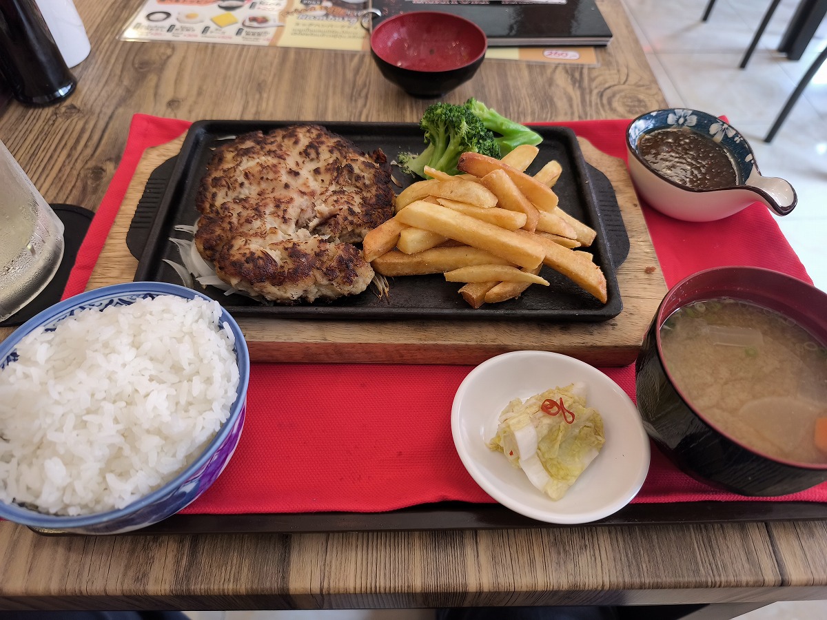 びっくりドンキー風ハンバーグ。肉が完全に焼けていなかった。