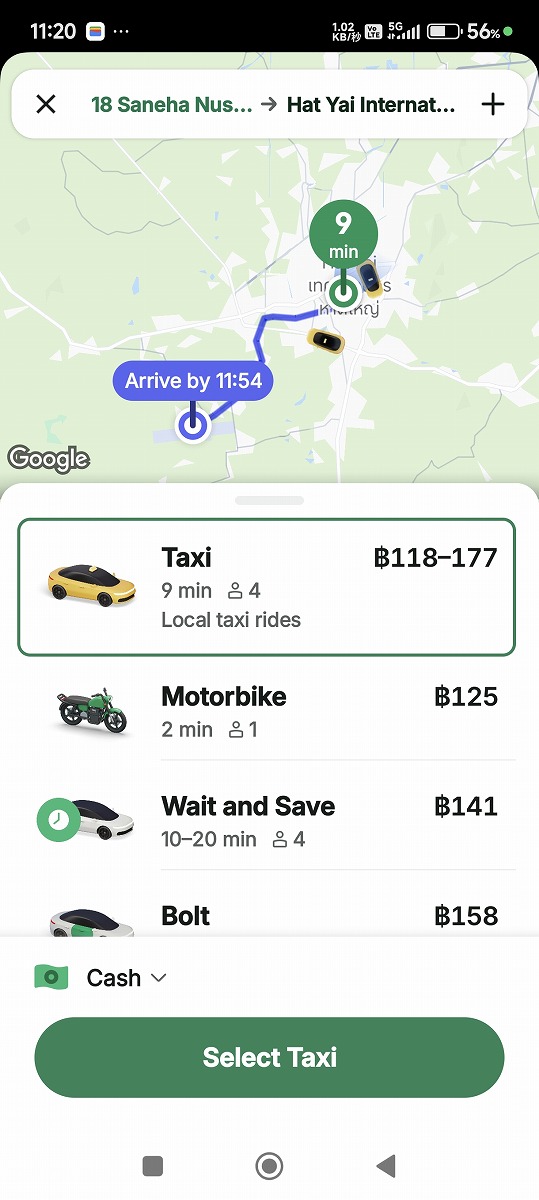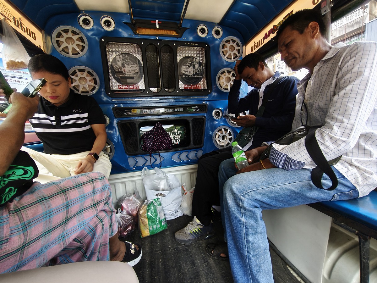 Phet Kasem roadに出て空港行きのソンテウを拾う。待ち時間なし。B40。
