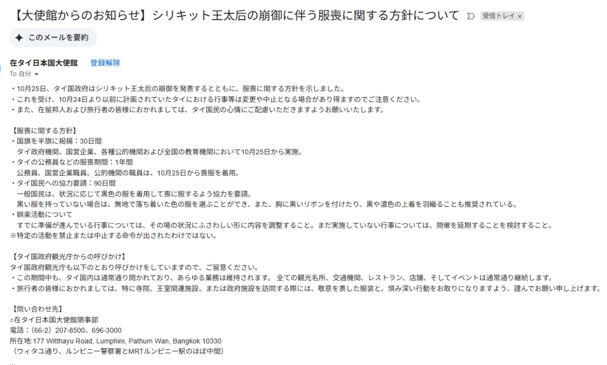 ということで、タイ国民の皆さんは深い悲しみにあるもよう。