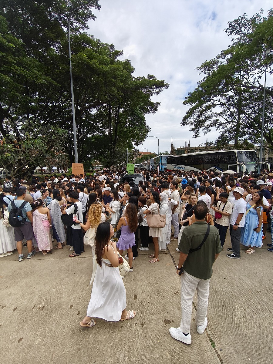 あと1kmのところで、もう耐えられず、バスやソンテウから降りて歩き出す人も多数。