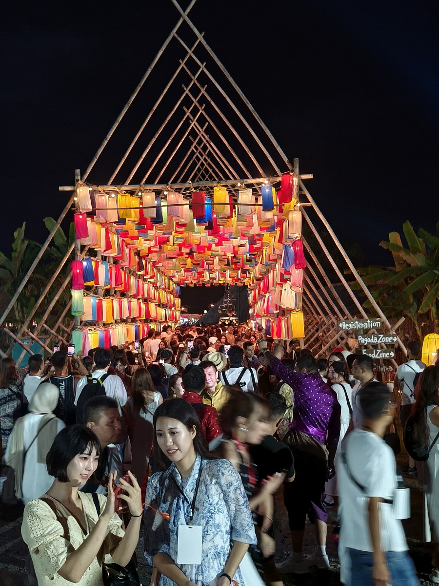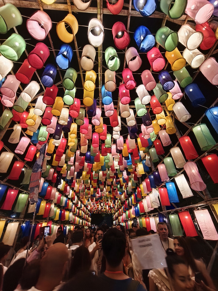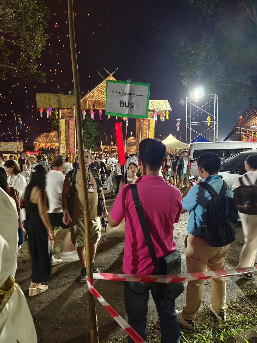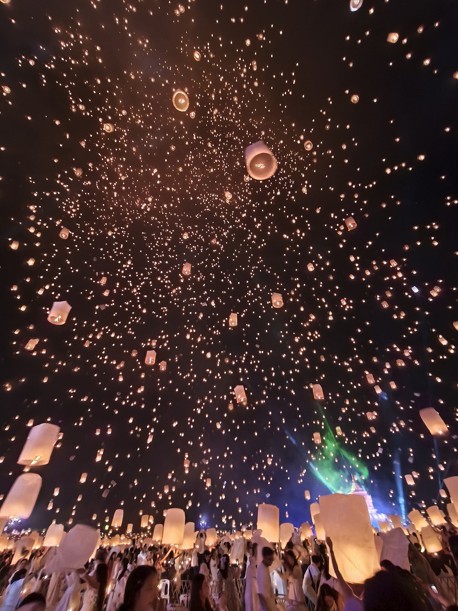 チェンマイではこういう有料なところが3個所が開催されるらしいが、ここが一番人が多いらしいのでこの景観。白いランタンが炎に染まるのが良いのだろう。