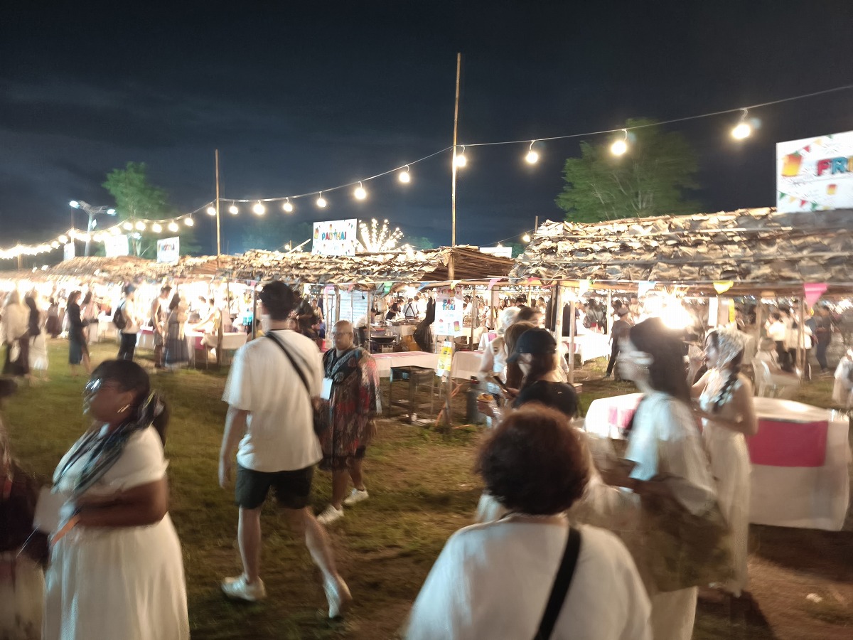 布がたらしてあった。バエル場所なので女性はめかした服を着ている人が多かった。とにかく万博みたいな感じだろうか。