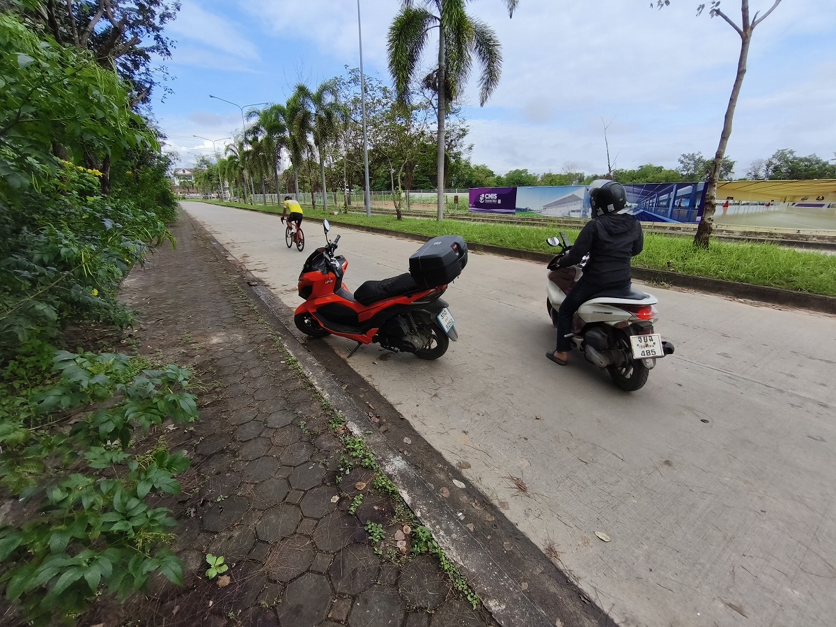 翌朝、グラブのバイクタクシーを使って会場に。あれだけたくさん車とバイクが駐車していたのに自分のバイクだけポツンとあった。