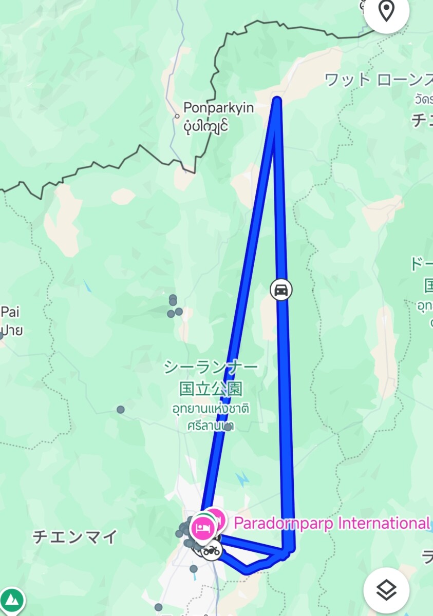 googleマップを見たら行ってもいない北の街まで行ったことになっている。