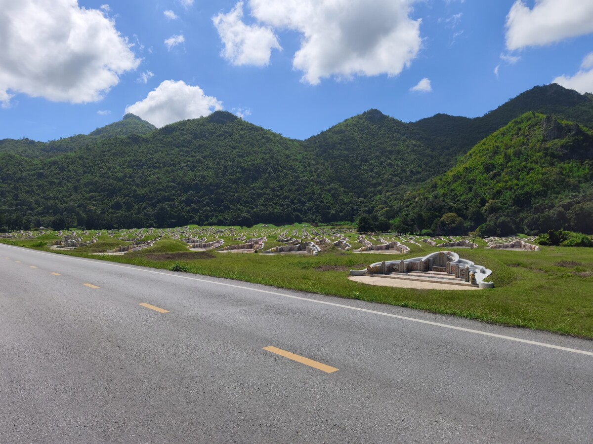 走っていると綺麗な墓地があった。みな同じ形なので美しい。中国人用かな?