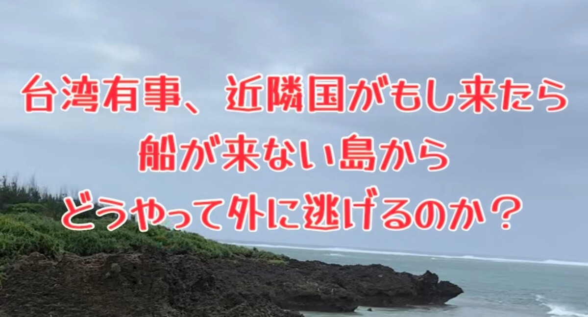 いきなり台湾有事に話が飛ぶのはどうかと思うけど、外に逃げる必要はなく、島にいたほうが安全では。海が荒れているときに台湾有事がおきる可能性も低いと思うし。そういう時は上陸とかしてこないし。