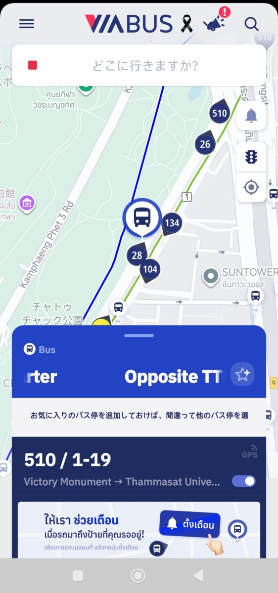 何番のバスに乗ればいいのか、乗りたいバスが今どこを走っているのかわかる。