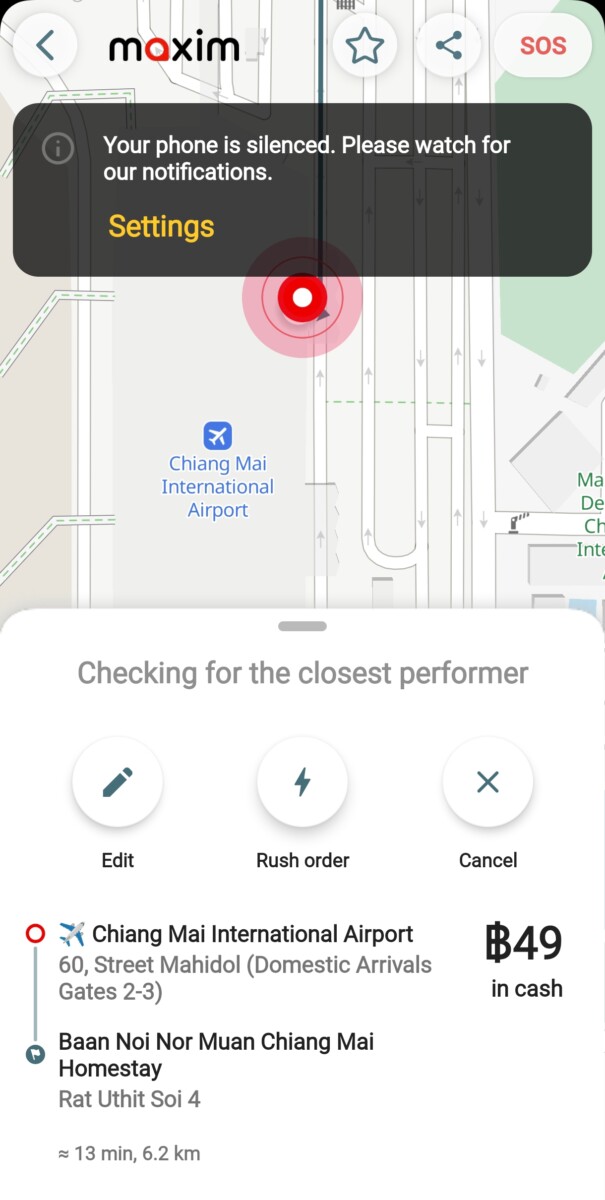 マキシム使ったら、だめだったはずだけど、行きと同じでアプリは閉じているのにしばらくすると手配したことになっている。
