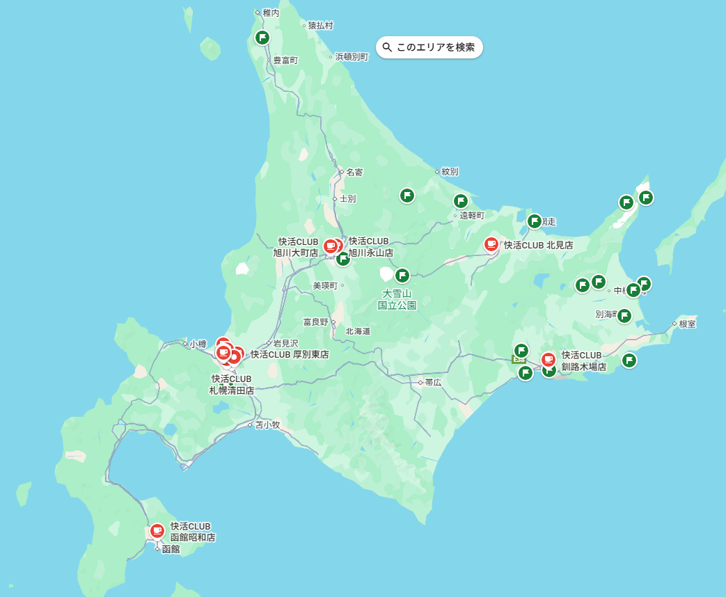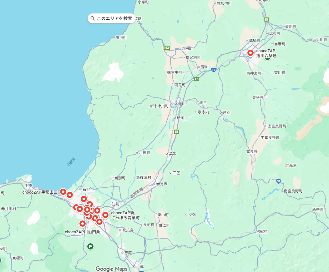 チョコザップはこれだけ。札幌ばかり。旭川に1店舗だけ。
