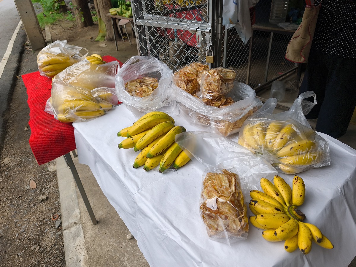 近所にバナナ専門店があった! 右下のバナナとバナナチップスでB50。