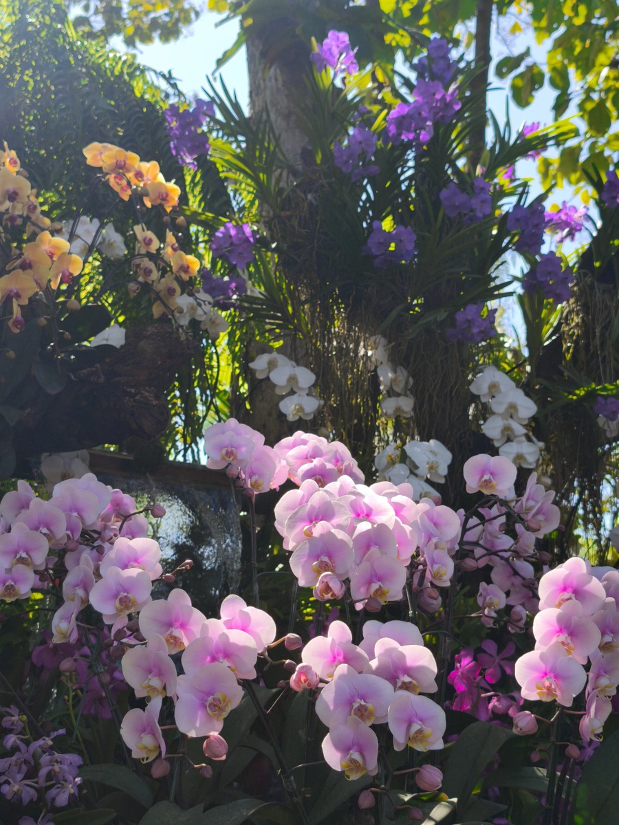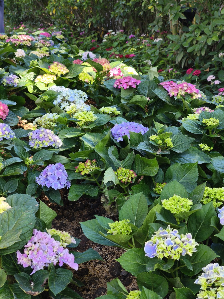 よく今の時季に同時に咲くように手配したものだ。手前のユリはこれから満開だ。