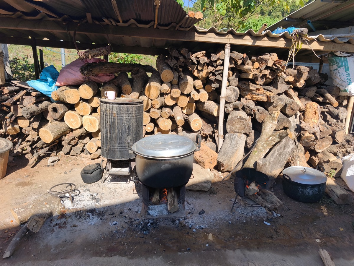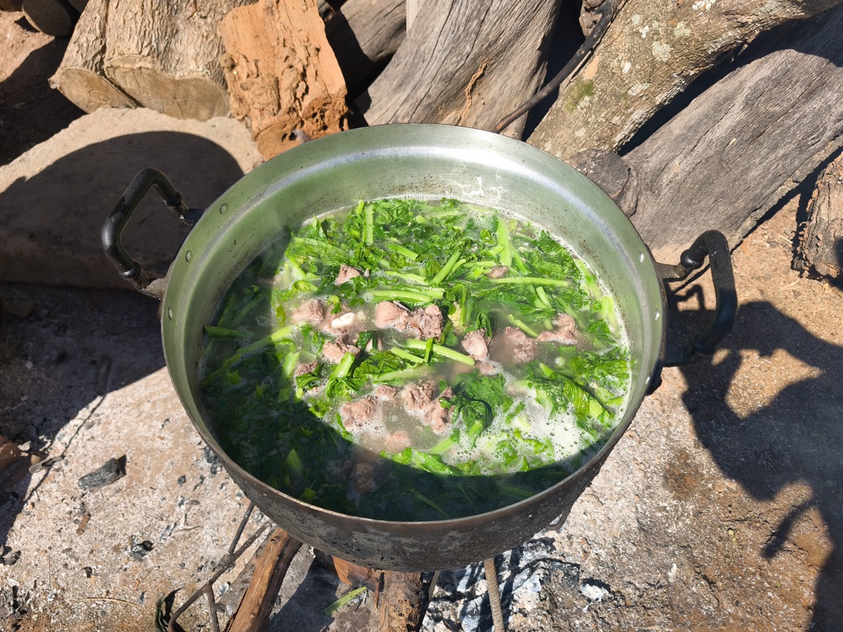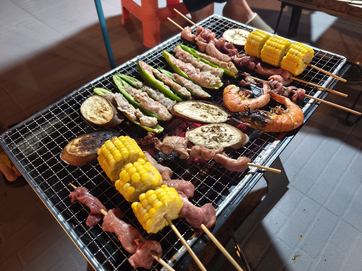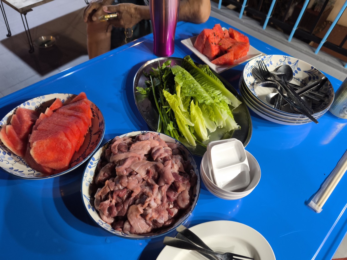 夜は、豚肉の残りと市場で買った野菜、フルーツでバーベキュー。