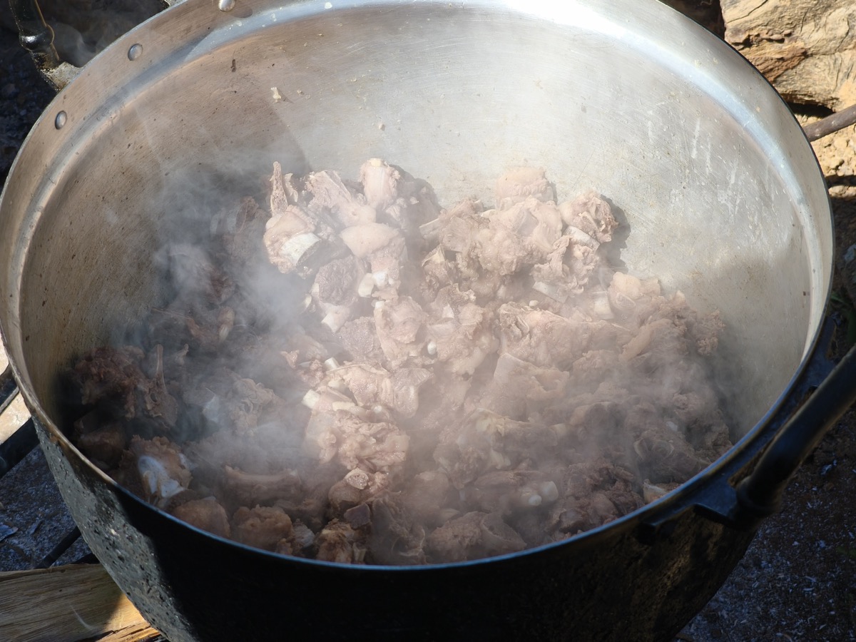 ごはんと一緒にありがたくいただきました。まだ2時間くらい前まで生きていた黒豚の肉です。うまいです。