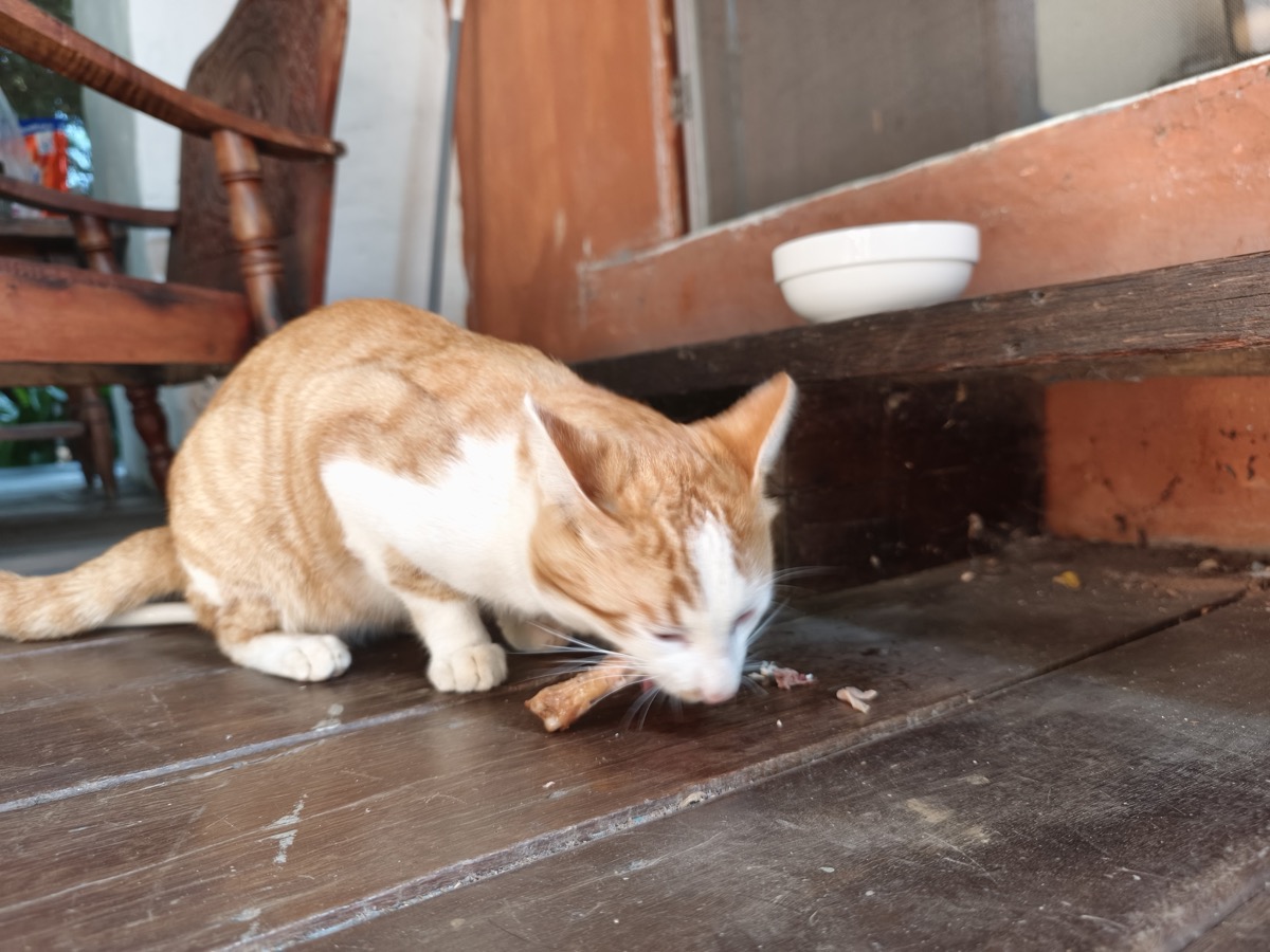 宿の猫のタム、黒猫のヤマト、一度しか見ていない黒猫で片手がない猫、最近入り浸りのキジトラ(ここ2日見ていない)、首輪をつけた茶色の猫、そして今回が6頭目。