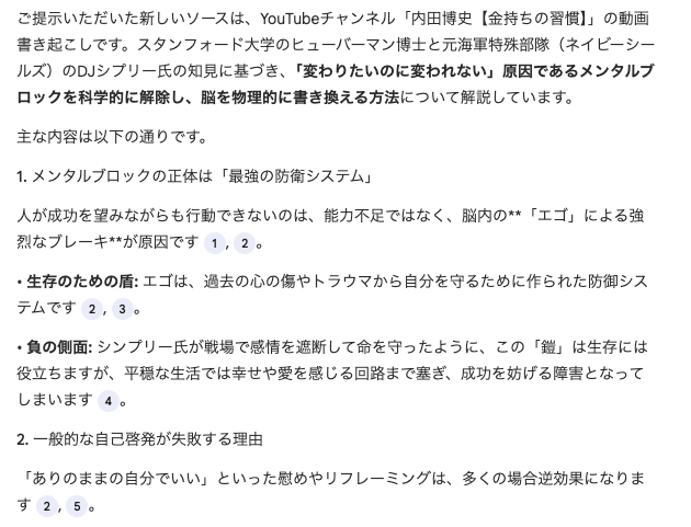 そのほか、YouTubeを要約させたら、ほんと、見る必要がなくなった。