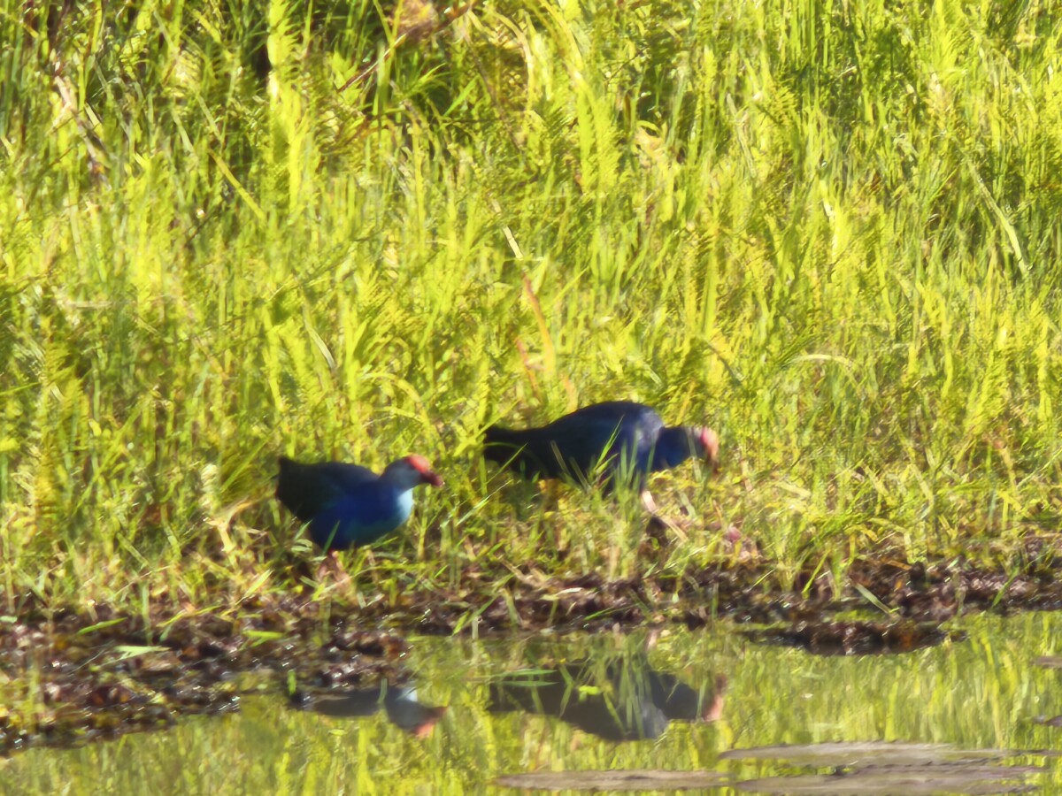 この鳥はセイケイ(プレコ)というらしい。青の光沢が綺麗。初見。
