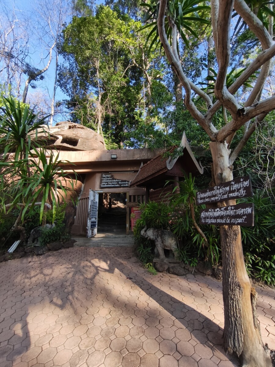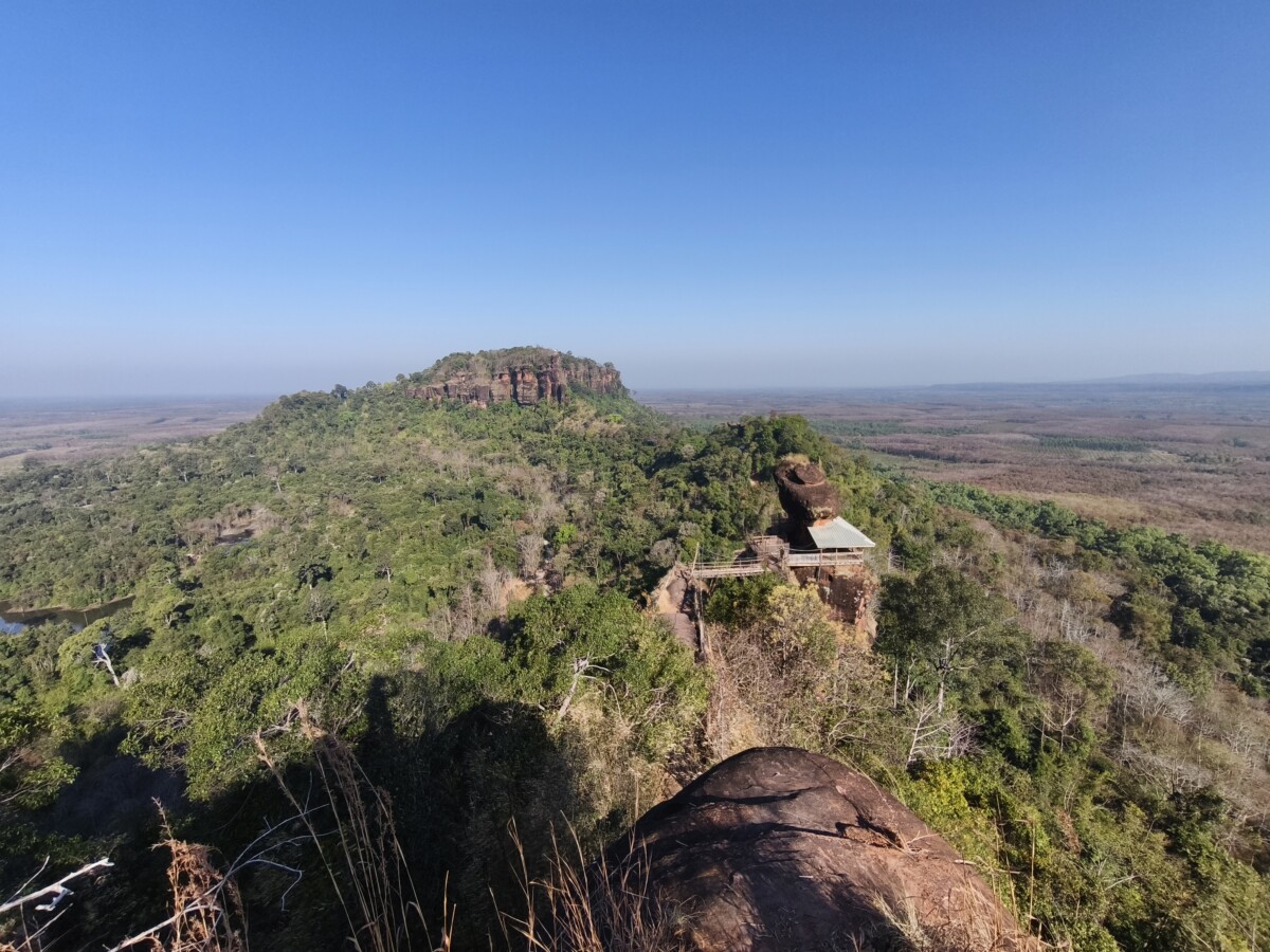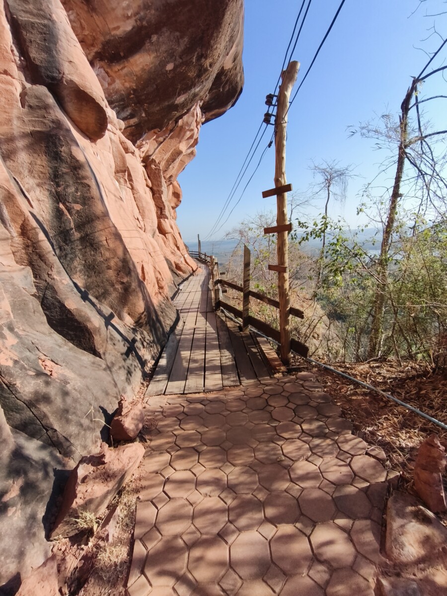タイのブンカン県にある、巨大な砂岩の山(プートーク)に建てられた仏教寺院で、断崖絶壁に沿って設置された木製の橋(桟道)を登っていく、スリリングで絶景が楽しめることで有名な修行の場です。メコン川の浸食でできた高さ140mの台地が特徴で、7層の桟道を渡りながら頂上を目指す構造は、悟りへの道(徳の道)を象徴しているとされ、高所恐怖症の人にはスリル満点ですが、周りの田園風景とメコン川の壮大な景色は格別です。