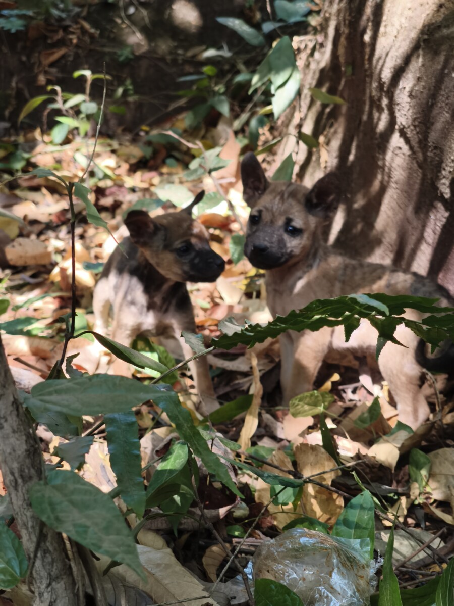 登り始めてすぐ仔犬が4頭。かなりおびえていました。