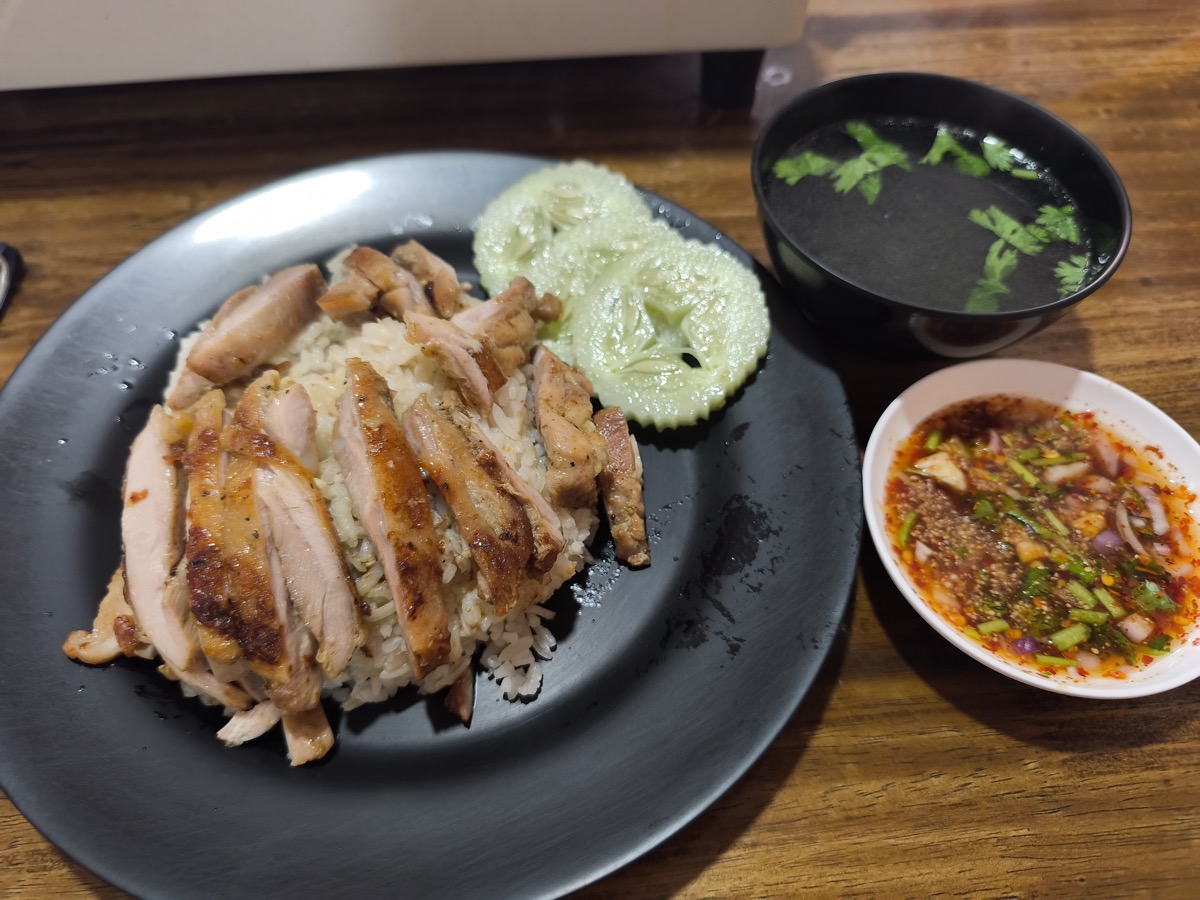 ハラルの店でグリルのカオマンガイ(B70)。おいしかった。