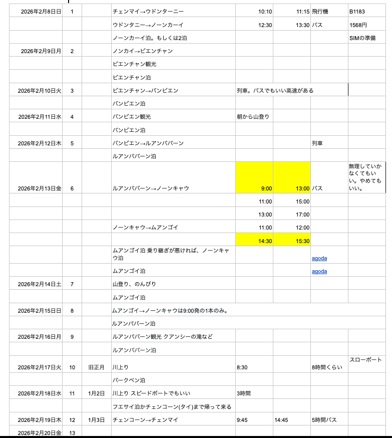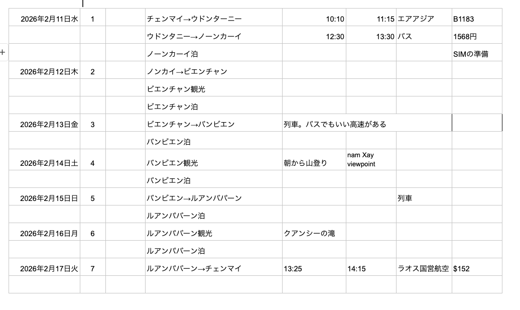 しかし、ラオスでバックパッカーをしてきた、ショウくんに相談してみると、小さな街で気が向いたら延泊するなど、あまりぎちぎちに予定を立てないほうが良さそう。