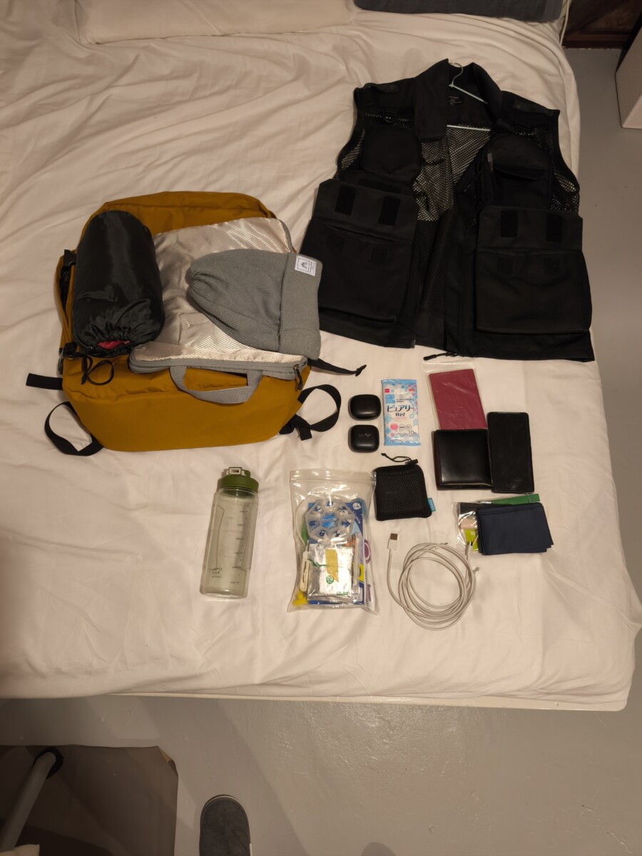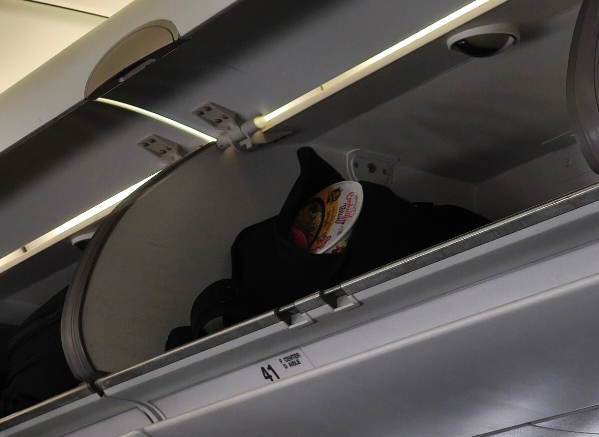 ファランの荷物。そうか! この手があった。カップラーメンを、持ち込み、CAさんにお湯だけもらえばいいのだ!