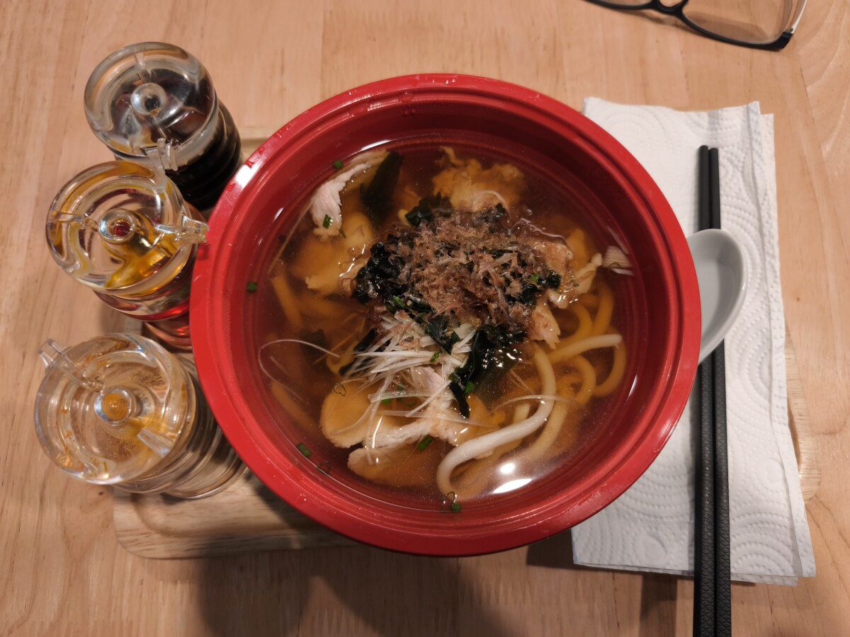 国際線搭乗口のレストランでB266の高級肉うどんを食べる。機内でカップラーメンという手もあるが。到着が19時30分なのでもつかな?