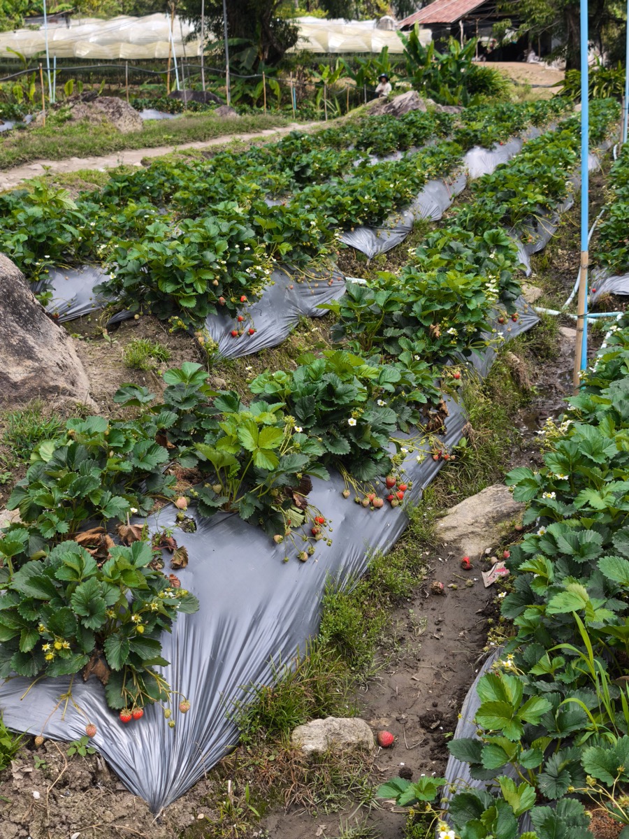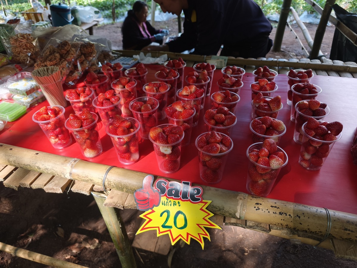 なんと休憩所があり、いちごの栽培をしているところで採れたてのイチゴがB20で売っていたので思わず買う。トレッキングにイチゴほど合うものはない。