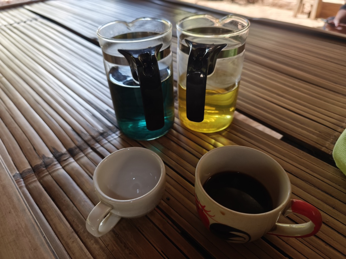 たぶん青いのはバタフライピーだと思う。コーヒーはおいしく感じた。
