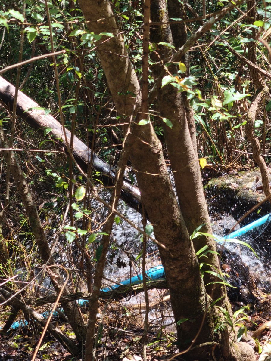 そして、右のほうの道っぽいところをあがっていったのが間違いだった。途中、水道管の水が漏れている。