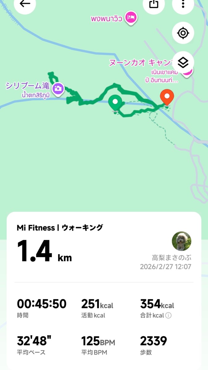 トレッキングコース、最初の20分、計測もれ。ガイドさん、けっこう早足だった。