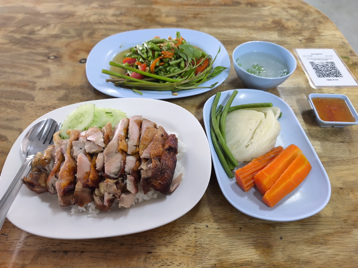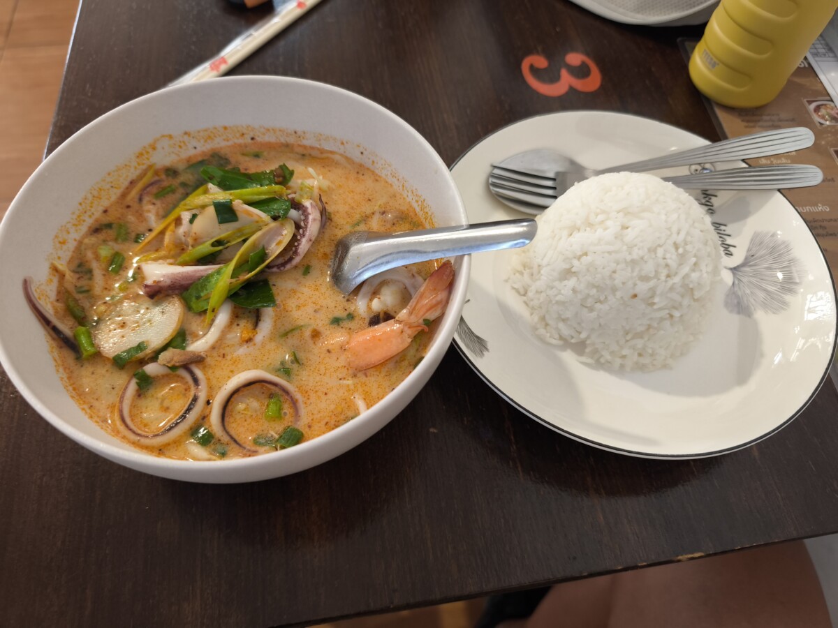 いつもの食堂でトムヤムクンを食べる。