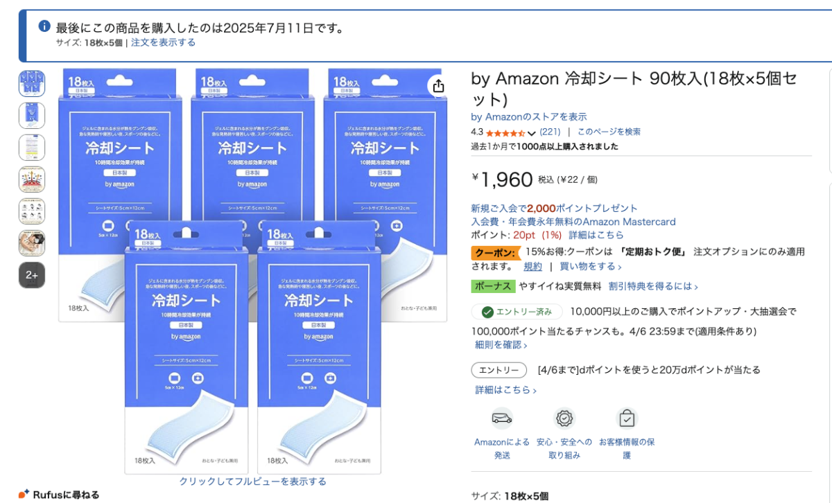 タイで冷却シートは高い。1枚100円くらいするイメージ。アマゾンだと21円なのに。