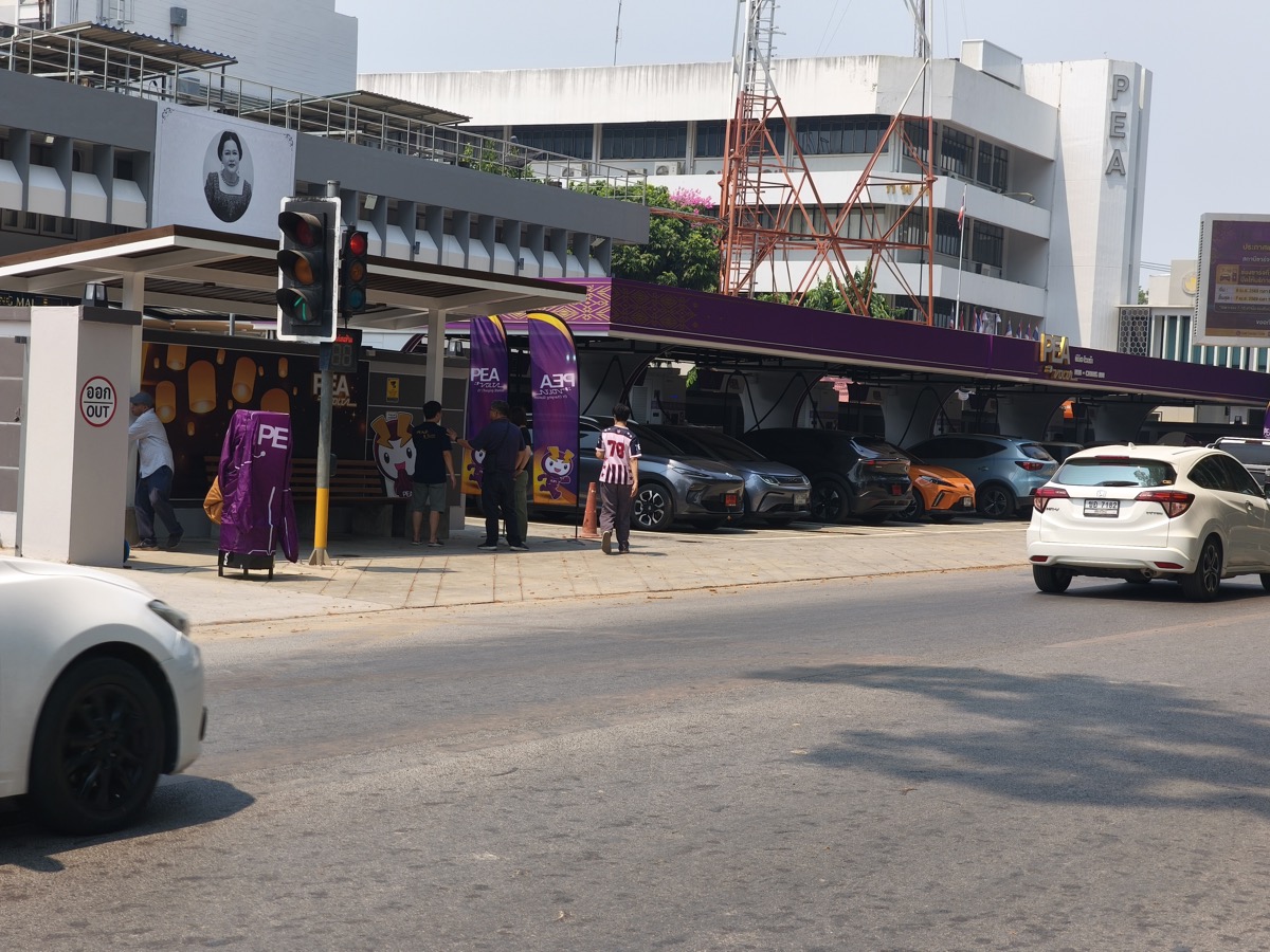 電力会社の前を通ったら、整備された充電ステーションがあり、ほぼ満車の大盛況。