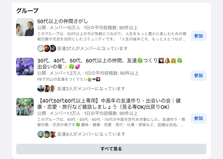 facebookグループで有用なものは、「友達をつくろう」ではなく、地域のコミュニティ、お得情報、マーケットプレイスなどでそれは利用する価値がある。