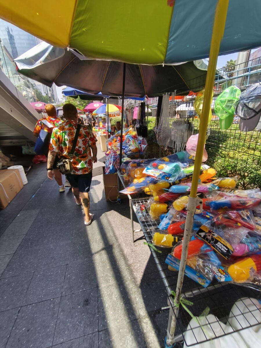 この前の道もホコ天になるのだろう。水鉄砲が売っている。
