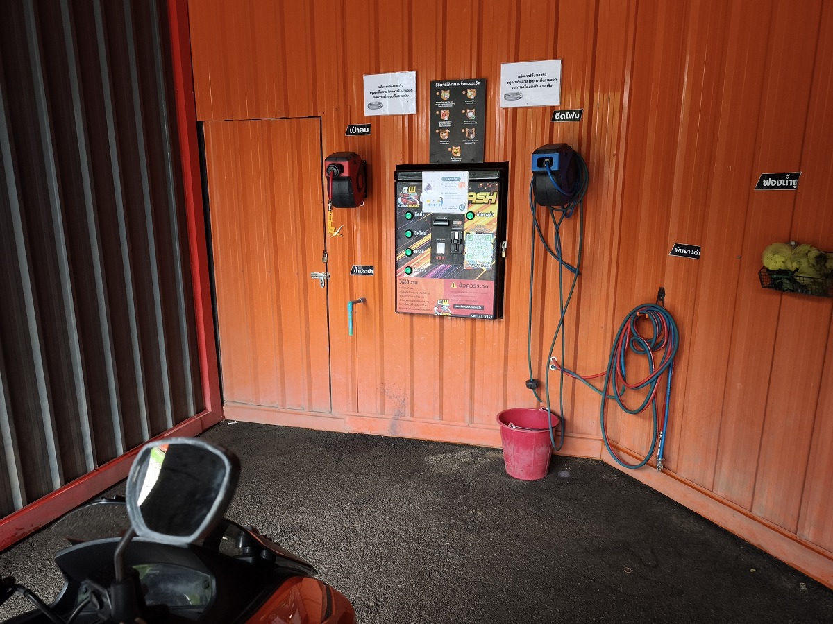 その後、洗車場があったので寄ってみる。B20で洗車完了できたが、器具が壊れていて使いにくかった。