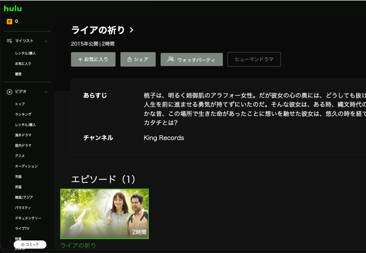 映画をHuluで見つけたので、千円の月会費を払ってみた。